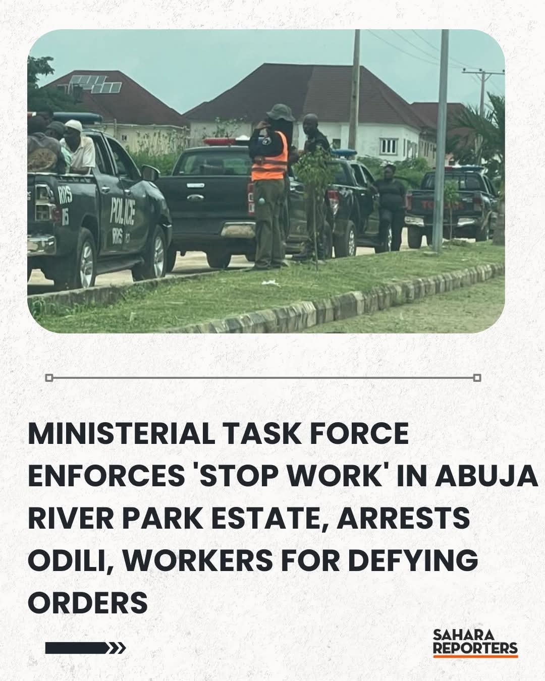 The Federal Capital Territory (FCT) Ministerial Task Force has stopped ongoing construction at the River Park Estate in Lugbe, Abuja, while arresting some workers who defied the orders of the court in the estate crisis.